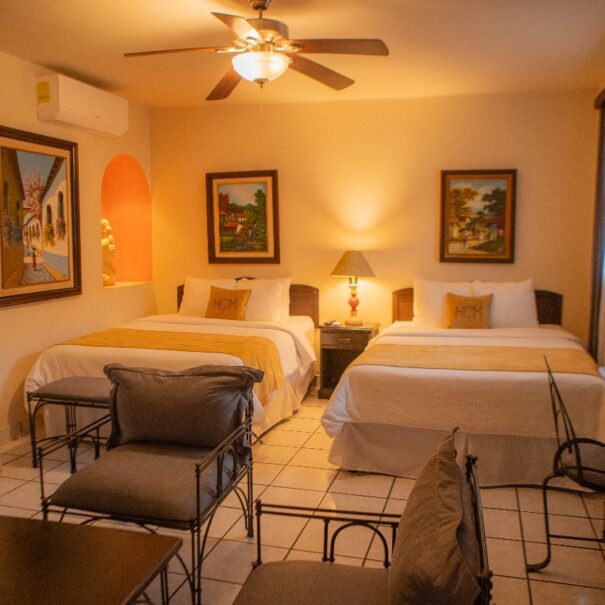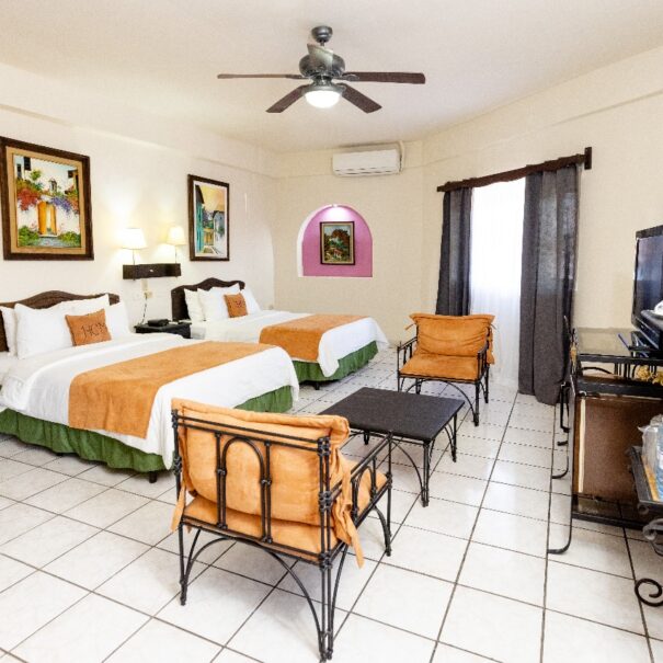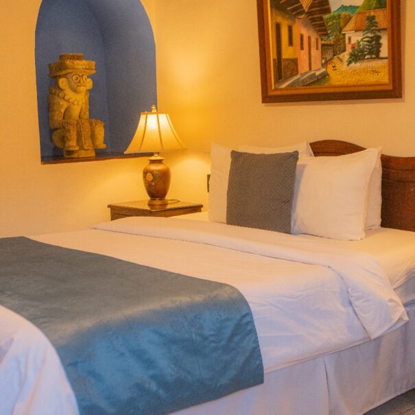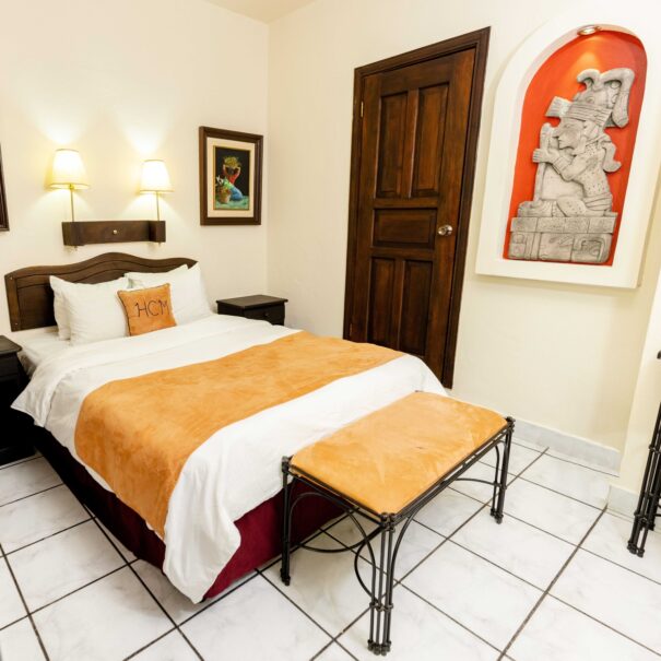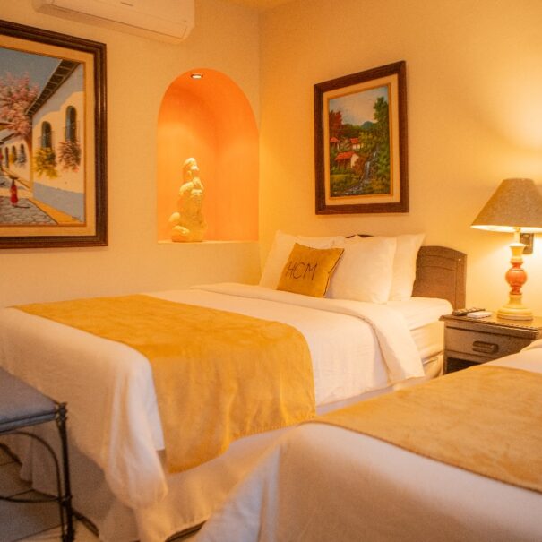 Nuestras habitaciones combinan el estilo colonial de Copán Ruinas con el confort moderno. Cada espacio ofrece aire acondicionado, cafetera, café y té de cortesía, limpieza diaria y detalles inspirados en la cultura maya. Habitación sencilla, Habitación Doble , habitación Triple y mini suit (Precios por confirmar)